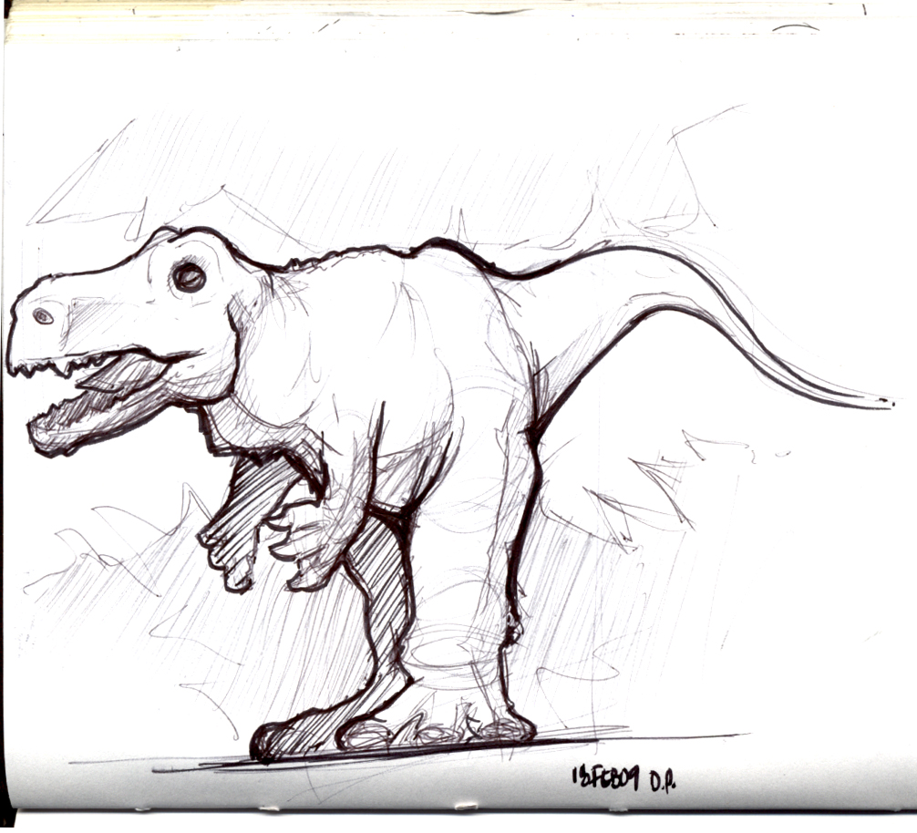…T-rex thumbnail sketch done last night on the ride home. I started the larger version of it, watch out for them later today.