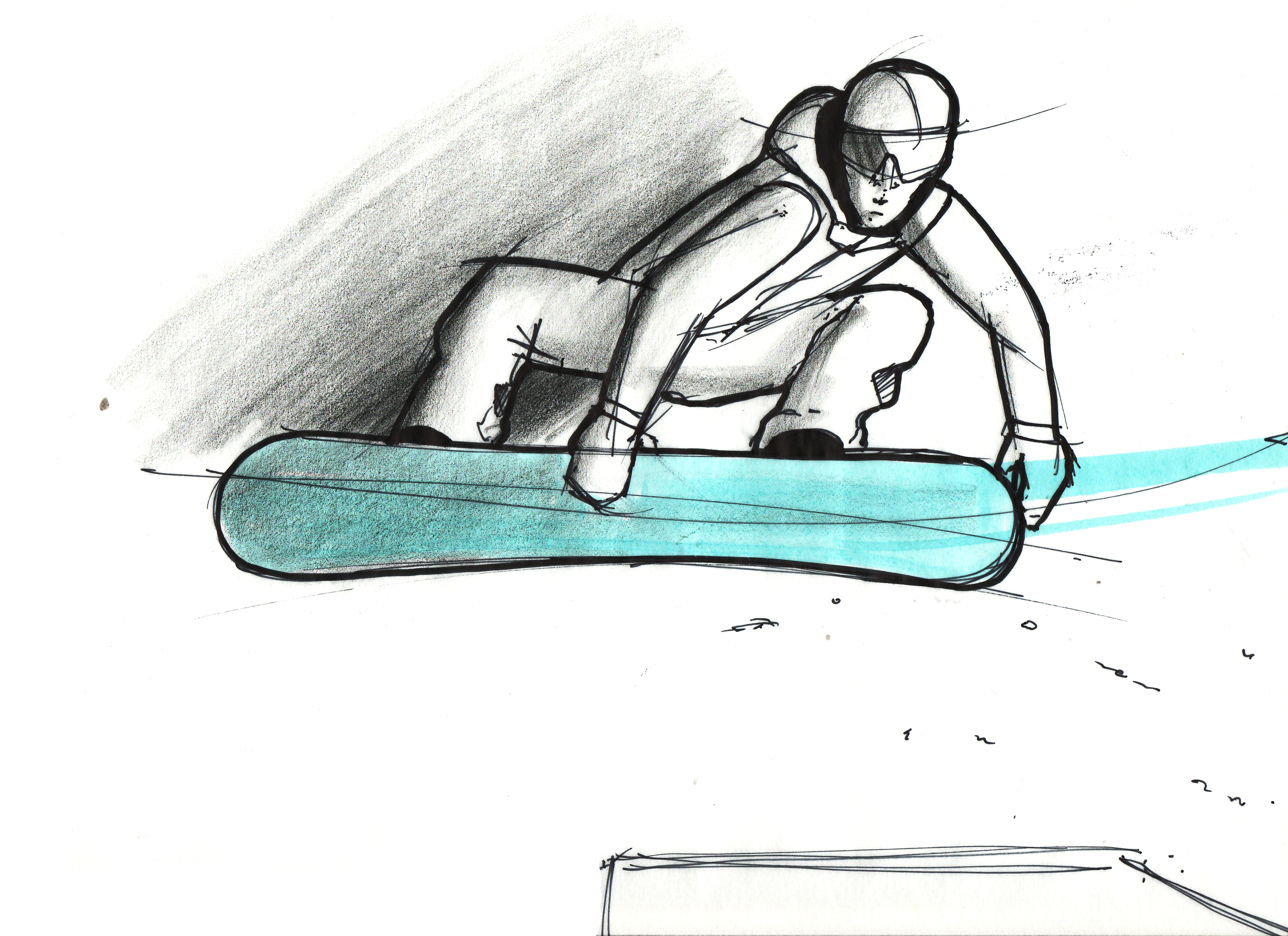 your sketch doesn’t show much energy/movement/animation. for example, I can’t determine which direction the boardboy is coming from.