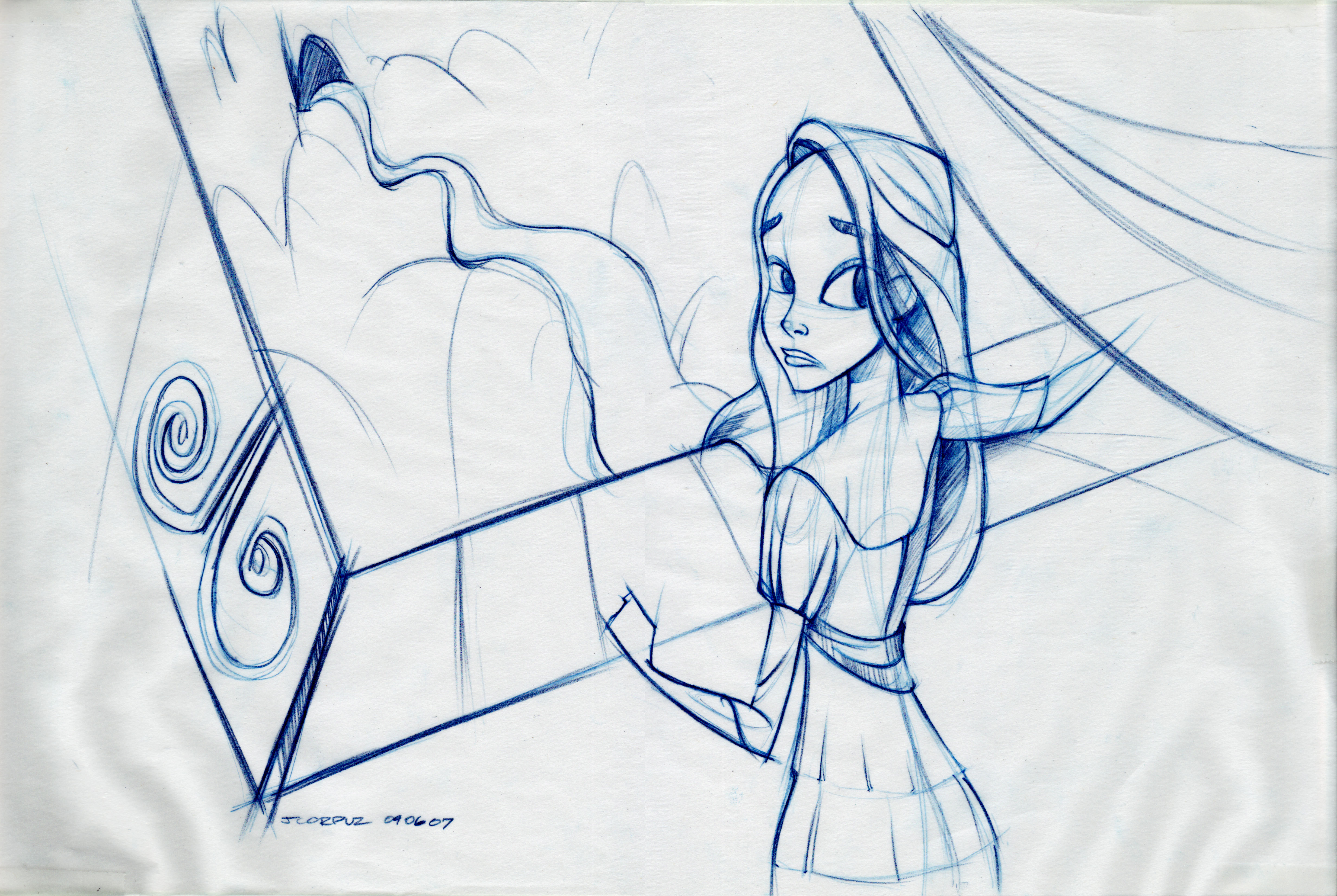 Ps…dude i watched all that stuff religiously growing up and i have always been sketching disney stuff since i can remember (wish my mom kept my sketches). and so, here is where i got my reference for those rapunzel sketches: from an interview of the two brilliant and stellar directors of disney’s upcoming film, rapunzel, where they show the inside of their studio with a wall of sketches, all development stuff (just like the “inside the disney hour”). They talked about having John Lasseter as a mentor on the set (they are so lucky!)…and yes, i wish i worked for disney/pixar doing voice overs and concept sketching…but alas i ended up doing product design, but who knows, maybe i still have a shot…
