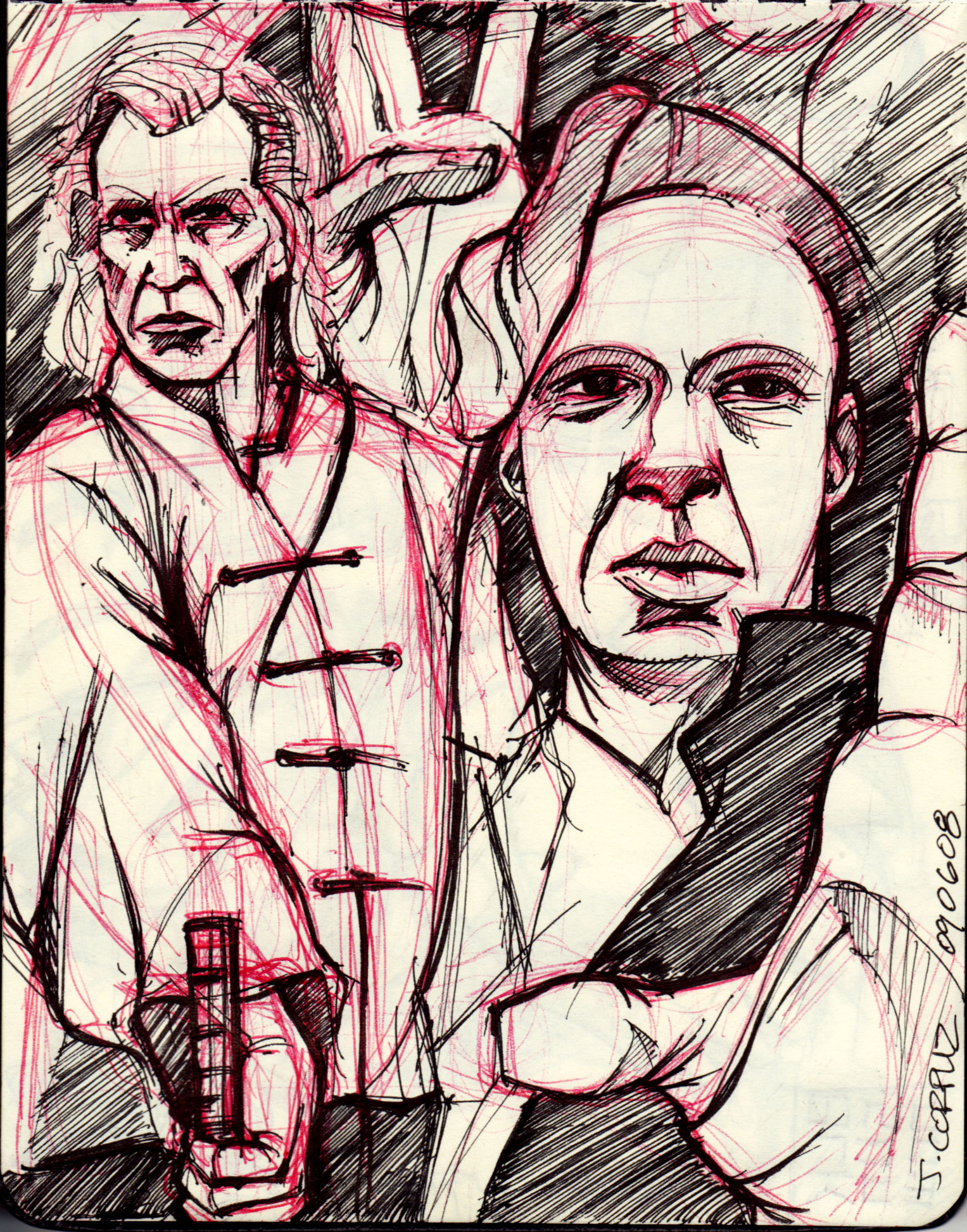 Once again Jon, This is great, you’ve really captured his likeness here, I like the red underlay with the black oversketch. F’n great man.!!! 🙂