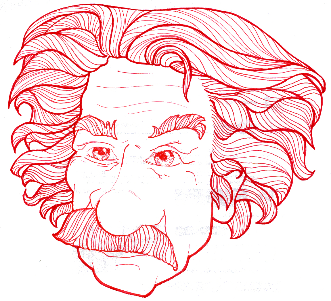 Just bought some new Pigma Micron pens with 0.20 mm line width. Did the initial sketch with the Micron (you can still see the thin lines at the nose, chin and eyes), then went over with a Pilot Precise V5. Pretty fun, never worked with anything so thin before. Did about half of this sketch at work today, finished the rest at home. I referenced an illustration that I saw online. This isn’t my normal style, but it felt right to attempt something untried with these new pens.