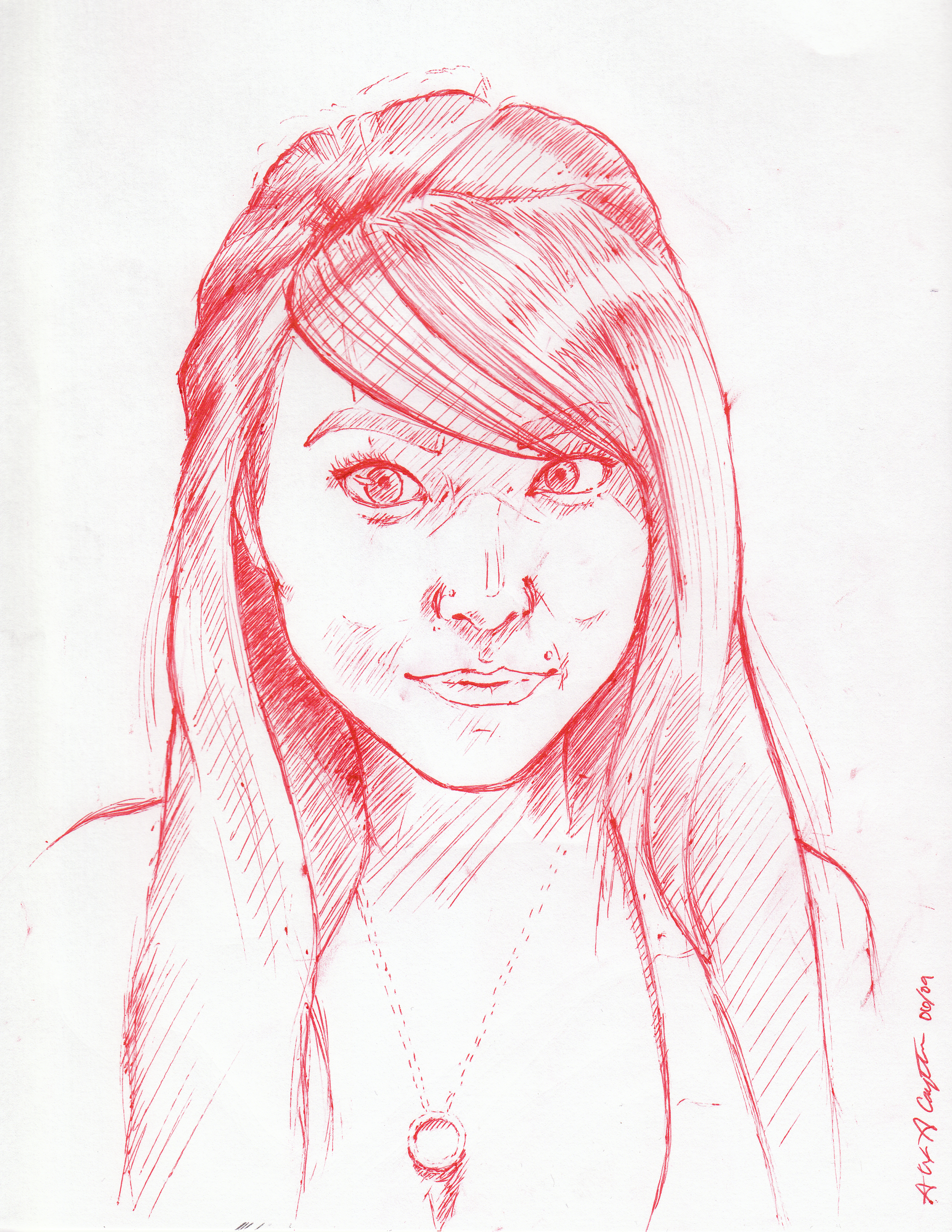 referencing from a photo,  i was trying to do mainly hatching in one direction to somehow shape the form of her head – especially in her hair.