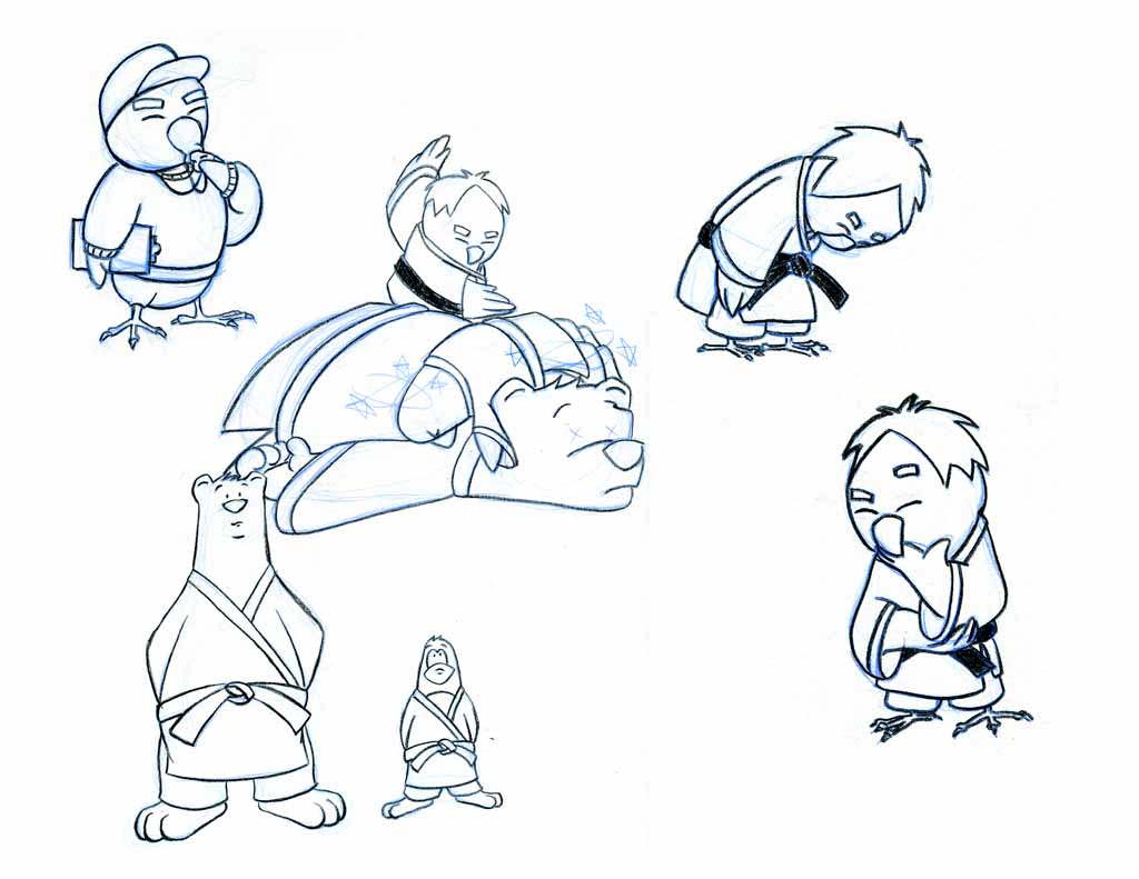 The first character I call, Hoot Sensei, an owl who teaches self-defense using Aikido. The early concepts of Hoot Sensei was a pretty generic old short character that could kick your ass. But that was too generic so after a few more iterations I thought about giving him a Steven Seagal look but still keeping that old wise and humble character.