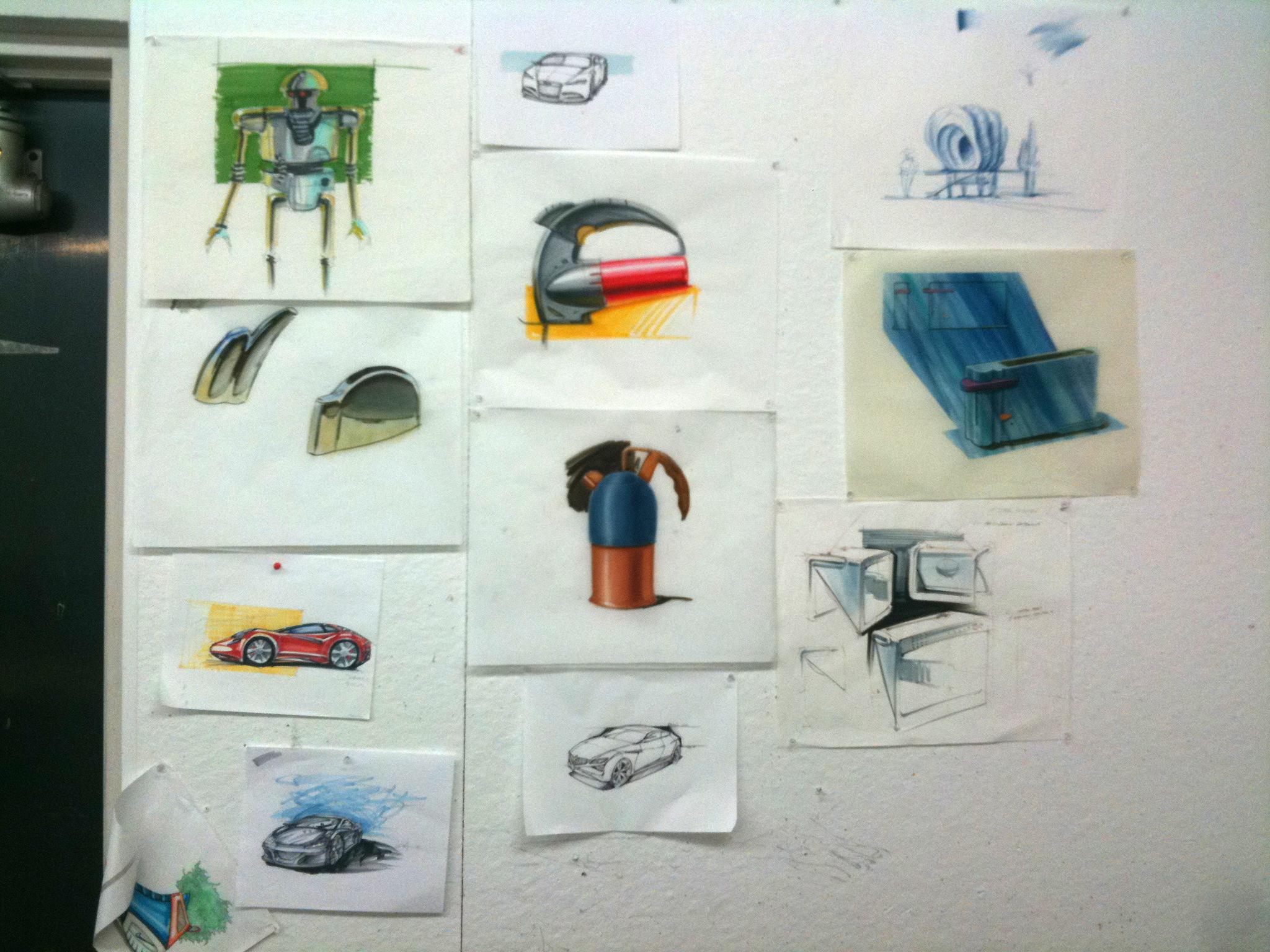 ….Dom and I broke back into the room where it all started for us this past weekend (the old ID Studio @ SJSU) and were so happy to see sketches on the walls, messy tables, new couches (thank god), and the biggest time waster-the dart board…