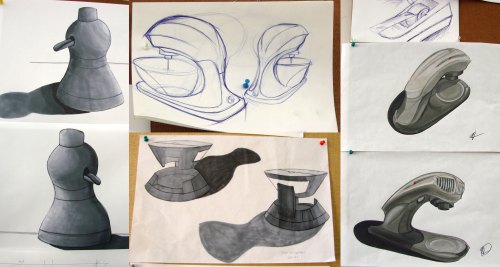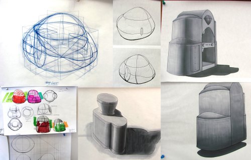This was their final…to redesign a housewares product…show us your understanding of perspective, construction, lineweight, rendering in monochrome (baby steps before color), shadows, and of course their first stab at redesigning something…here are some snap shots of what they presented to us…